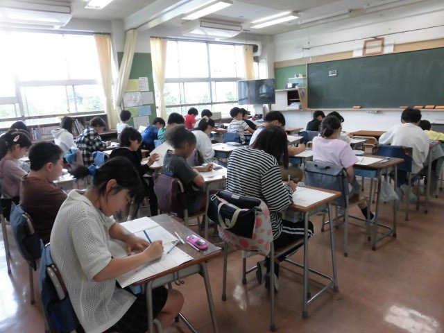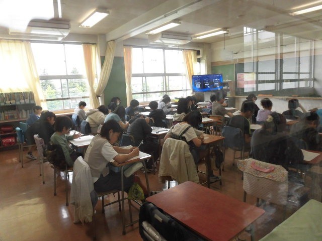 6年生今日、全国学力テストがありました。みんな一生懸命に問題を解いています。