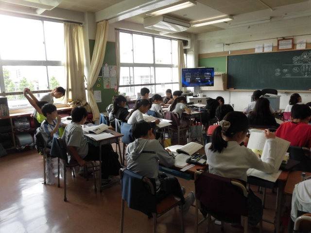 5年生の授業は国語です。物語の読解の学習です。子どもたちは物語の登場人物の関係図をノートにかいています。登場人物はどのような人なのでしょう。どのようなかかわりがあるのでしょう。