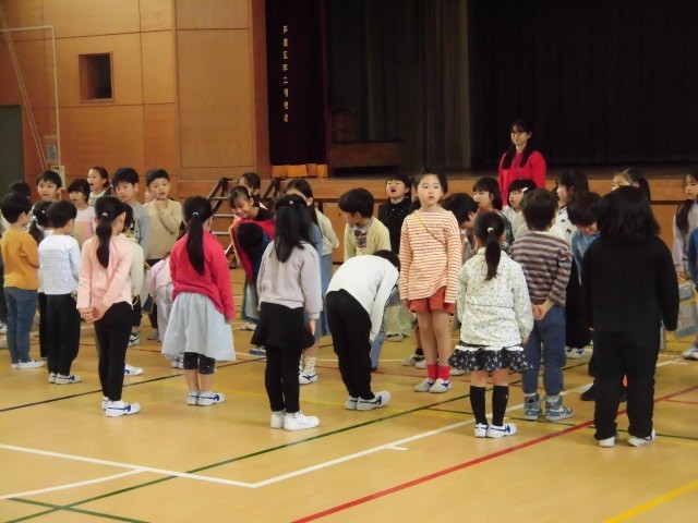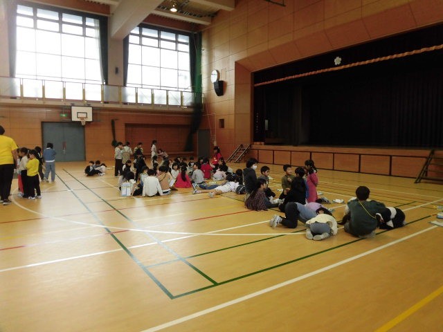 最後は、体育館に集まり、互いにお礼を言い合っていました。