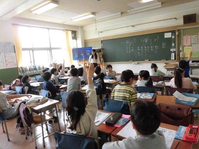 2年生の授業は国語です。漢字の学習です。