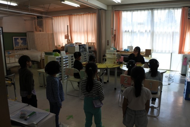 待っている人たちはとても静かです。検査をしている人たちのことを考えて行動することのできる1年生2年生です。