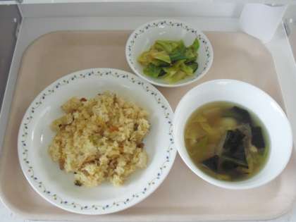 キムチチャーハン 牛乳 白玉スープ 中華サラダ