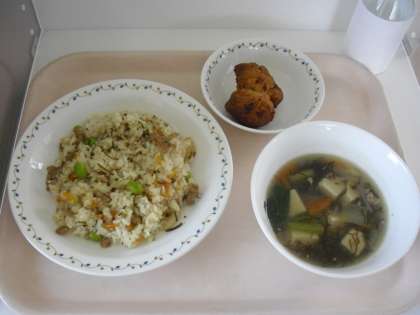 にんじん・鶏肉(徳島県)、玉ねぎ(千葉県)、小松菜(東京都)、(冷)枝豆(北海道)、(冷)もずく(沖縄県)、鶏卵(青森県)、豚肉(群馬県)