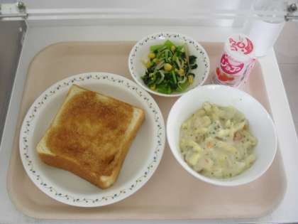 シナモントースト ジョア マカロニのクリーム煮 小松菜サラダ