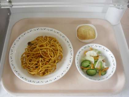 スパゲッティナポリタン 牛乳 フレンチサラダ チーズケーキ