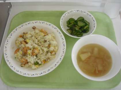 えびとたまごのチャーハン 牛乳 とうがん汁 きゅうりの中華味