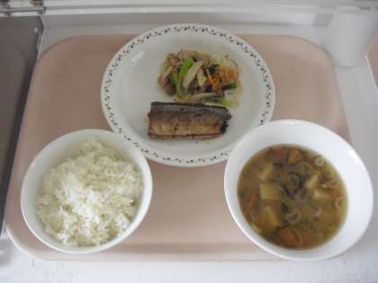 ごはん 牛乳 さんまの塩焼き しめじ入り煮びたし もずくのみそ汁