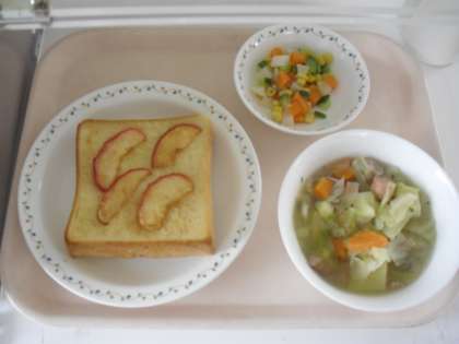 アップルシナモントースト 牛乳 ポトフ コロコロサラダ
