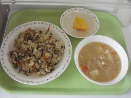 五目ごはん 牛乳 豚汁 柿