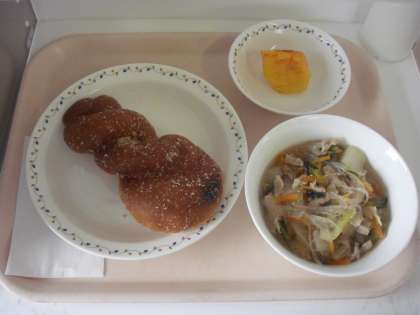 掦げパン 牛乳 白菜と春雨のスープ 柿