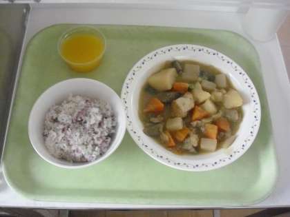 にんじん(千葉県)、ごぼう(青森県)、じゃがいも・玉ねぎ(北海道)、いんげん(沖縄県)、みかん(3−1セレクト給食)(愛媛県)、米(岡山県)、豚肉(群馬県)