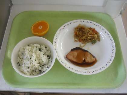 ごはん 牛乳 ぶりの照り焼き 切り干し大根のきんぴら 菊花みかん
