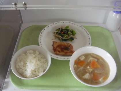 ごはん 牛乳 魚のしょうが風味焼き 野菜の磯辺かけ みそ汁