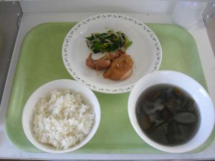 麦ごはん 牛乳 鶏肉の照り焼き ほうれん草のおひたし 根菜汁