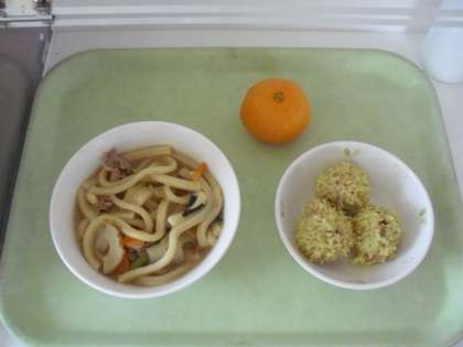 ちゃんこうどん 牛乳 菊花蒸し団子 みかん