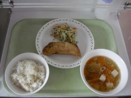 麦ごはん 牛乳 ジャンボ餃子 切干大根のはりはり酢の物 豆腐汁