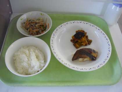 ごはん 牛乳 ほっけの塩焼き かぼちゃの揚げ煮 春菊の煮びたし
