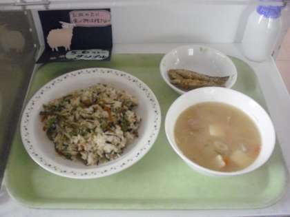 ひじきごはん 牛乳 豚汁 わかさぎのから揚げ