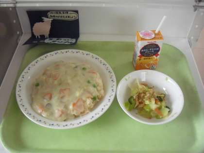 キャロットライスのドリア風 みかんジュース ごぼうチップサラダ