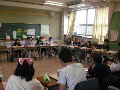 今日は、お別れ給食会でした。各クラスに6年生を招き、一緒に給食を食べました。お話をしたりゲームをしたり、楽しい給食の時間が過ごせましたね。