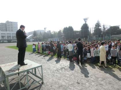 いよいよ、平成27年度がスタートしました。青い芝生の上に329名の子どもたちが揃いました。どの子も新しい学年のスタートに対して、期待に胸を膨らませている様子でした。6年生児童の代表の言葉は最上級生として意気込みが伝わってくる素晴らしい内容でした。新しい先生との出会いも子どもたちにとっては新鮮でした。