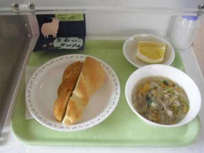 揚げパン コッペパン 牛乳 白菜と春雨のスープ 美生柑