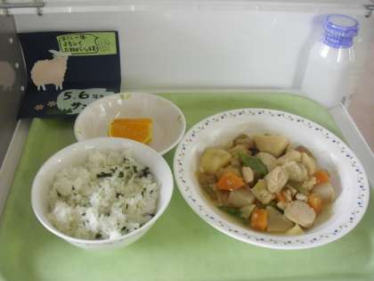 わかめごはん 牛乳 春野菜のうま煮 清見オレンジ