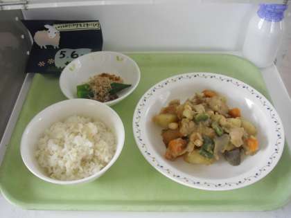 麦ごはん 牛乳 豆入り筑前煮 おくらのおかかかけ