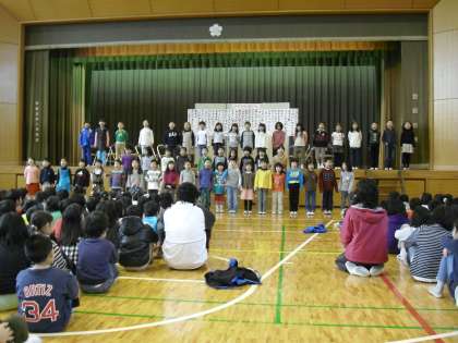 美しい音色と歌声に、こころ温まる音楽朝会となりました。