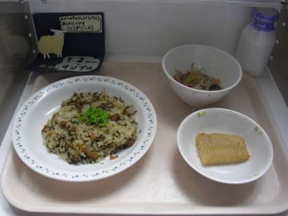 磯おこわ 牛乳 いかの照り焼き 青菜と春雨の炒め物