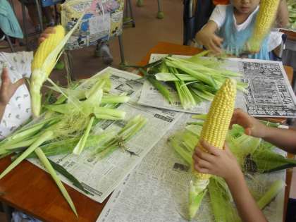 また、今日のとうもろこしは1年生が皮むきをしてくれました。1年生のおかげで、池尻小みんなが、給食をおいしく食べることができました。ありがとうございました。