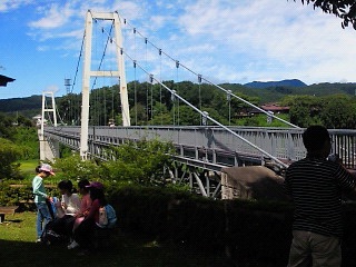 ふれあい橋で休憩、快晴です! 5年担任