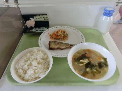 麦ごはん 牛乳 さんまの塩焼き ごま酢かけ みそ汁