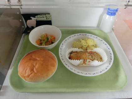 ミルクパン 牛乳 鶏肉のガーリック焼き パセリポテト みかん入りフレンチサラダ