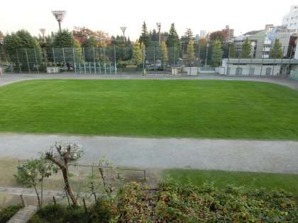 11月30日まで、1か月にわたり芝生の養生を行ってきました。保護シートをとると、冬芝が青々と茂っていました。明日より、芝生の上にまた子どもたちの元気な姿を見ることができます。
