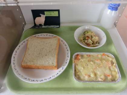 セサミ食パン 牛乳 マカロニグラタン ツナサラダ