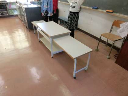 給食の配膳台が全学級で新しいものに変わりました。より安全で清潔を意識した学校環境を目指していきます。