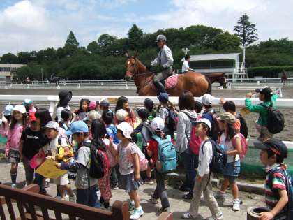 馬の障害物レースの練習風景や、馬の散歩(調整中かな?)