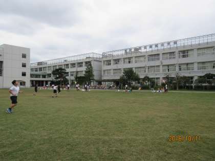 10月11日〈火〉に「青空交流給食」が行われました。今年はくもり空で、少しはだ寒さも感じましたが、みんなでしばふの上にシートをしいて、お弁当給食を食べました。各縦割り班ごとに1年生から6年生まで車座になって食事する様子は、とても楽しく仲の良さがうかがえます。異年れいでの交流が深まりました。片付けは、5年生が中心になって進めます。低学年児童も指示に従って、ゴミを分別して片付けました。