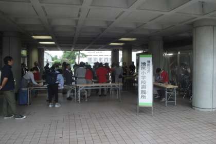 9月2日(日)本日は、池尻小学校において地域の非難所運営訓練がありました。毎年この時期に実施しています。池尻小学校は、大きな災害があった時に必要に応じて避難所になります。地域で運営することになるため、地域の方が大勢集まって実施しています。