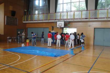 地域の方や保護者の方が、いくつかの班に分かれて実施しています。無線機操作・公衆電話設置、発電機操作、バーナー操作、マンホールトイレ設置などです。困った時には皆さんで協力することになります。池尻の地域の方々に感謝申し上げます。ありがとうございます。