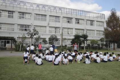 10月18日(木)4時間目には、君野貴弘さんと十種競技を専門とする田代 章さんとともに6年生に走高跳とハードル走を中心に指導していただきました。23日(火)の連合運動会に生かそうと子どもたちも一生懸命に練習に取り組んでいました。