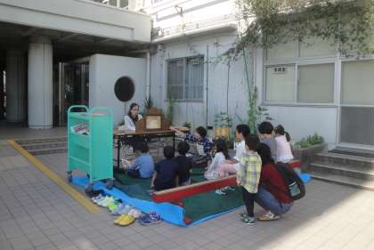 10月20日(土)の遊び場開放の中で「青空おはなし会」がありました。秋晴れの清々しいお天気でしたので事務室前に場所をつくり、青空おはなし会をしました。青空の下でとても素敵な時間が過ごせました。次回もたくさんのお友達に来ていただけるといいなと思います。