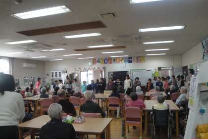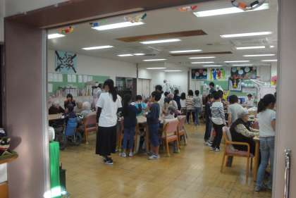 11月26日・30日と2日間、4年生はクラスごとに、池尻小学校の隣のデイホーム池尻と交流を行いました。歌を歌ったり、運動会で演技した踊りを披露したりした後、お年寄りと一緒にお手玉やけん玉・トランプなどをして楽しみました。みなさんに大変喜んでいただきました。