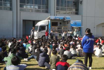 12月19日(水)今日の避難訓練は地震を想定した訓練でした。本日は、区へお願いして起震車に来てもらい、5年生が体験しました。感想は、どの子どもも「震度7が思った以上に揺れたのでびっくりしました」ということでした。普段から地震が起きた時には、どうすればよいか話し合っておくとよいと思います。よろしくお願いいたします。