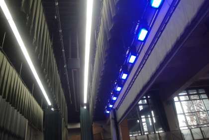 12月21日(金)体育館の舞台の上にある照明の工事が終わりました。舞台前方の照明は、今まで色を変えるにはフィルムを変えて行っていましたが、LEDになったことで体育館の放送室から調整することができるようになりました。ずいぶんと楽になりました。