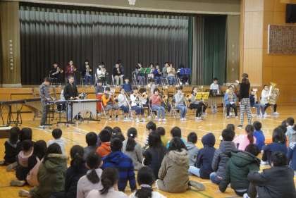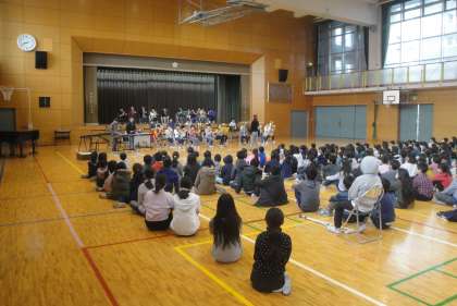 2月13日(水)今日の音楽朝会は、金管バンドの発表会でした。16日(土)には、世田谷区民会館で管楽器発表会があり、そこで演奏する曲を全校児童の前で披露しました。当日も頑張ってください。