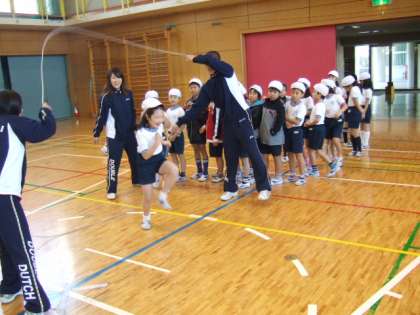 日体大のみなさんに、ダブルダッチを教えてもらいました。