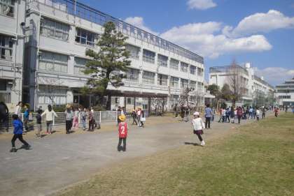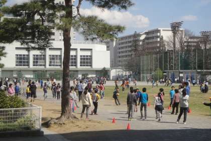 食事の後は、校庭に出て1年生から6年生までたてわり班ごとに一緒に遊びました。楽しかったです。