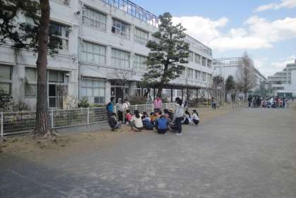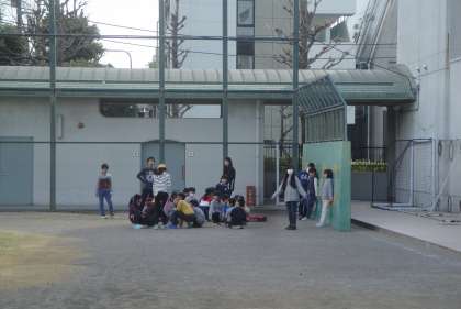最後に、校庭でたてわり班ごとのまとめを行いました。